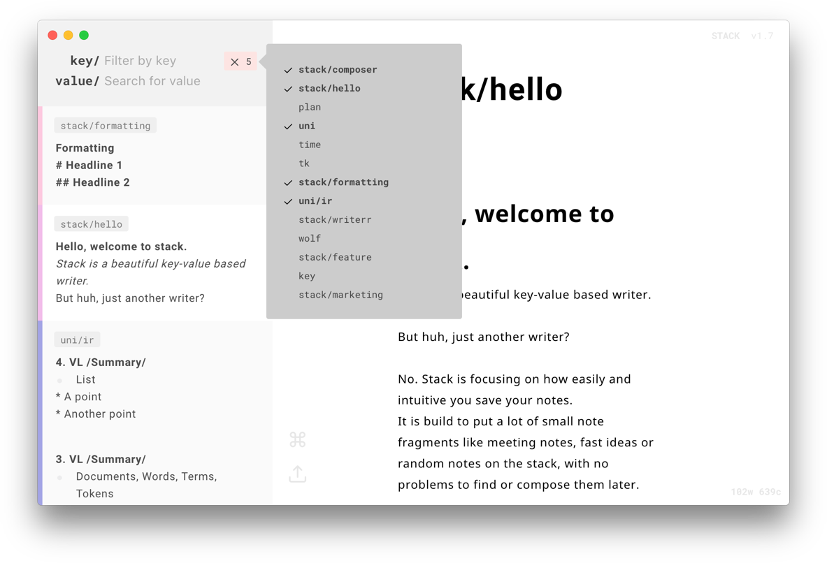 Stack Writer is a smart and beautiful key-value based markdown writer app to collect data you work with each day.